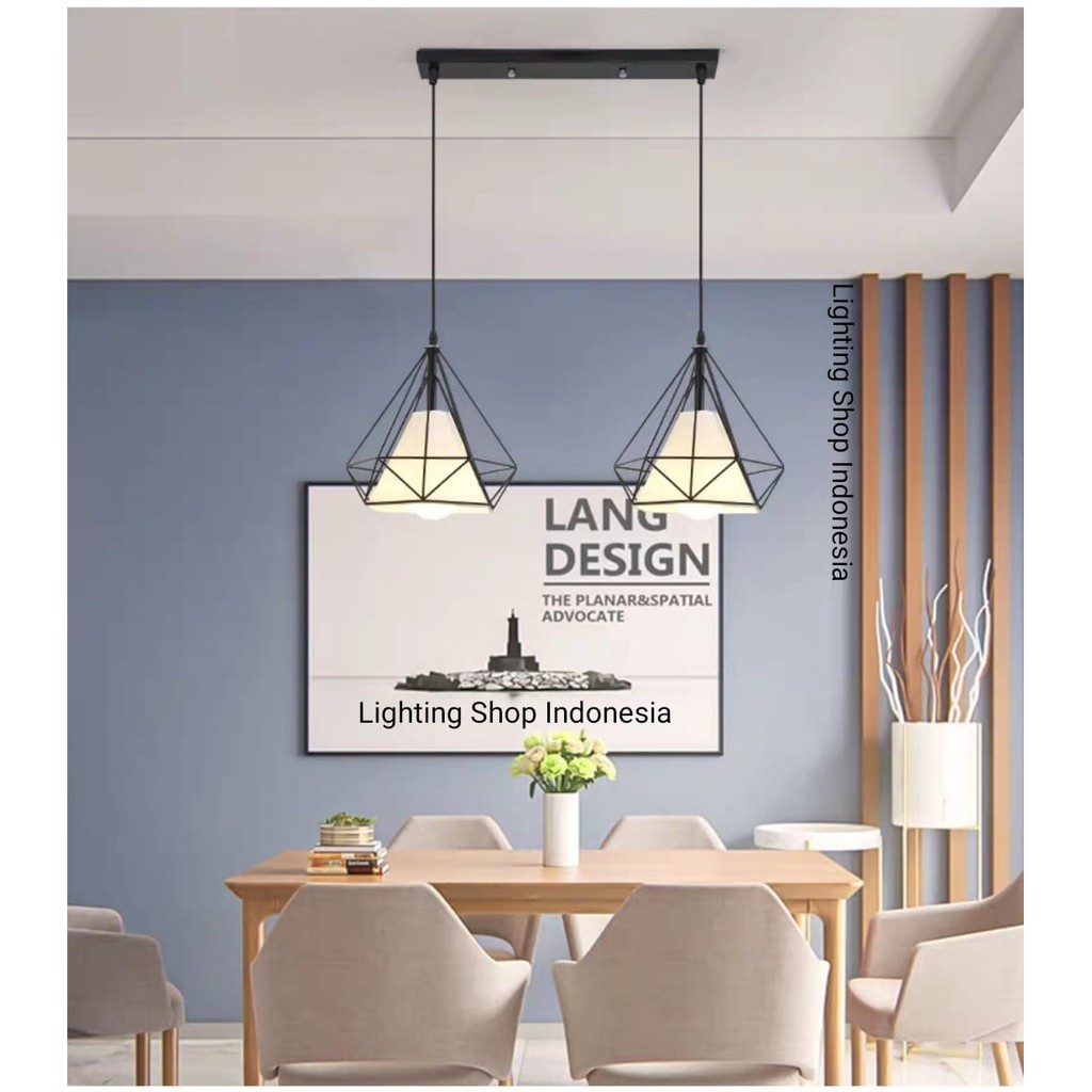 Jual Lampu Gantung Hias Meja Makan 2in1 Model Diamond Kain 2 In 1 Minimalis Kafe Indonesia Shopee Indonesia
